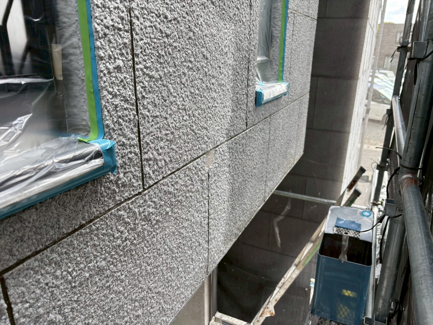 目地も養生して吹き付けを2回吹き付ければオッケイです