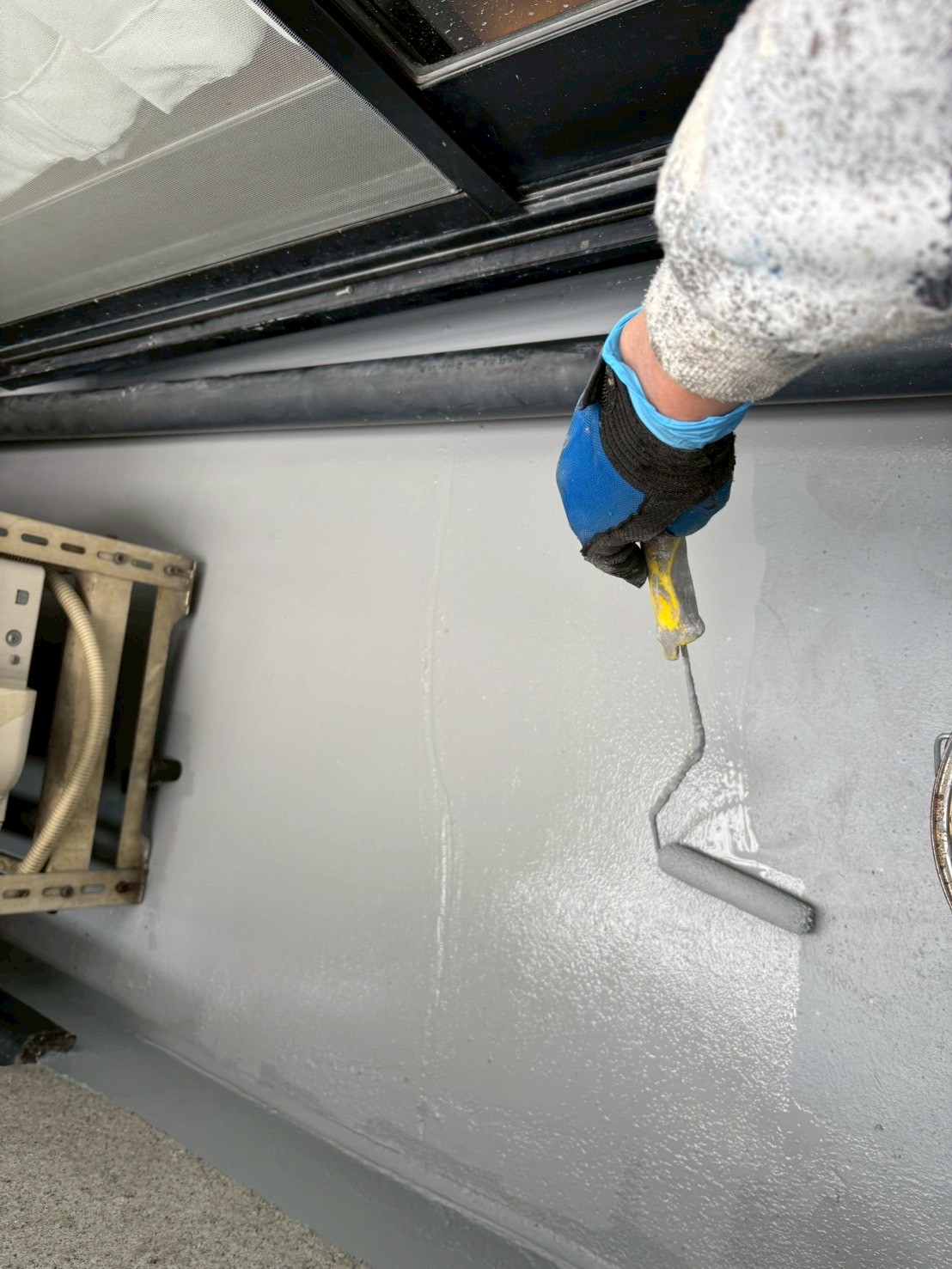 下塗りを浸透性の物を2回塗装してシッカリ芯まで固めて吹き付けをしたので