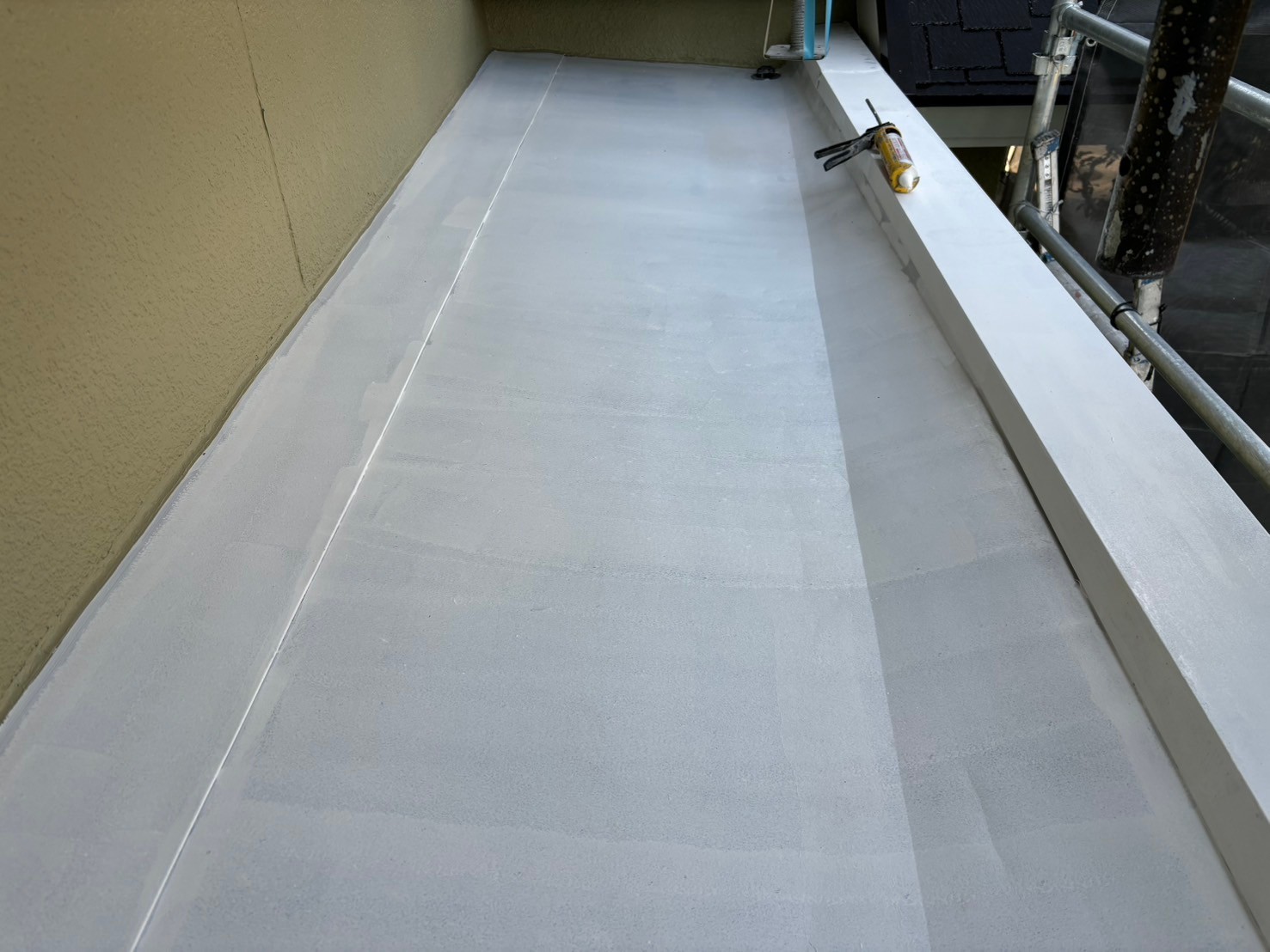 水性防水は中塗りを3回塗り重ねてからトップコートで最後の仕上げです。